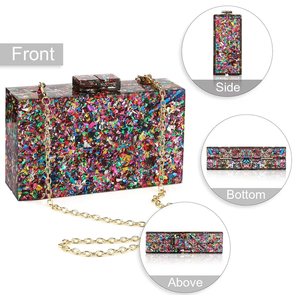 The Acrylic Bling Prom Bag pairs beautifully with cocktail dresses, evening gowns, and formal attire. Its shimmering details make it a standout accessory for women who love fashion handbags, evening bags, statement clutch purses, and trendy party bags. Whether attending a prom, gala, or special celebration, this bag ensures you turn heads with a touch of sparkle.